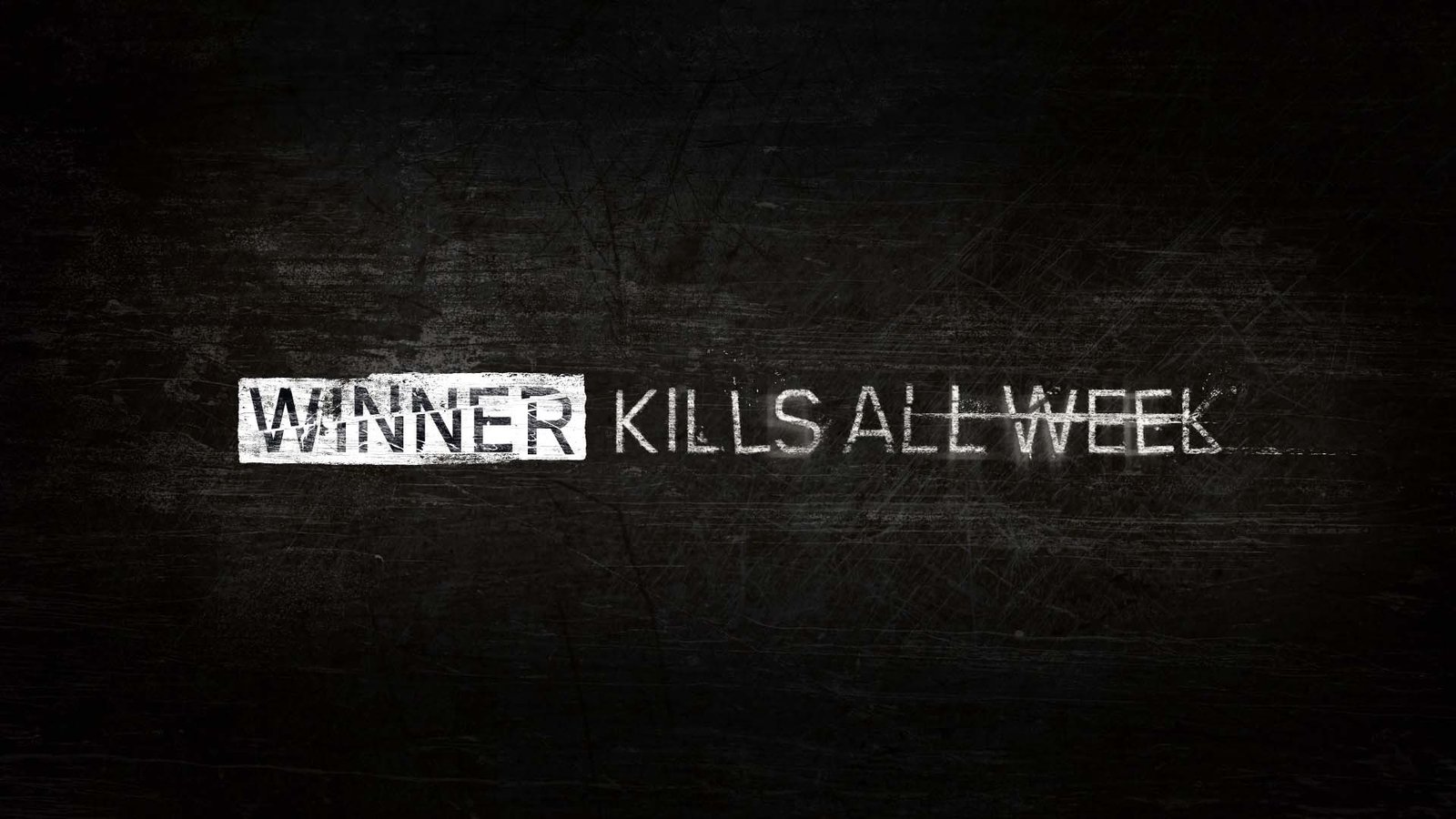 Winner Kills All Week logo designed for a week of movies where they all end with the last victim standing. It’s survival of the horror’s fittest. Hence the naming of this particular Chiller stunt week. I designed both black and white versions that would be used interchangeably that could be used in with different parts of our on-air packaging.