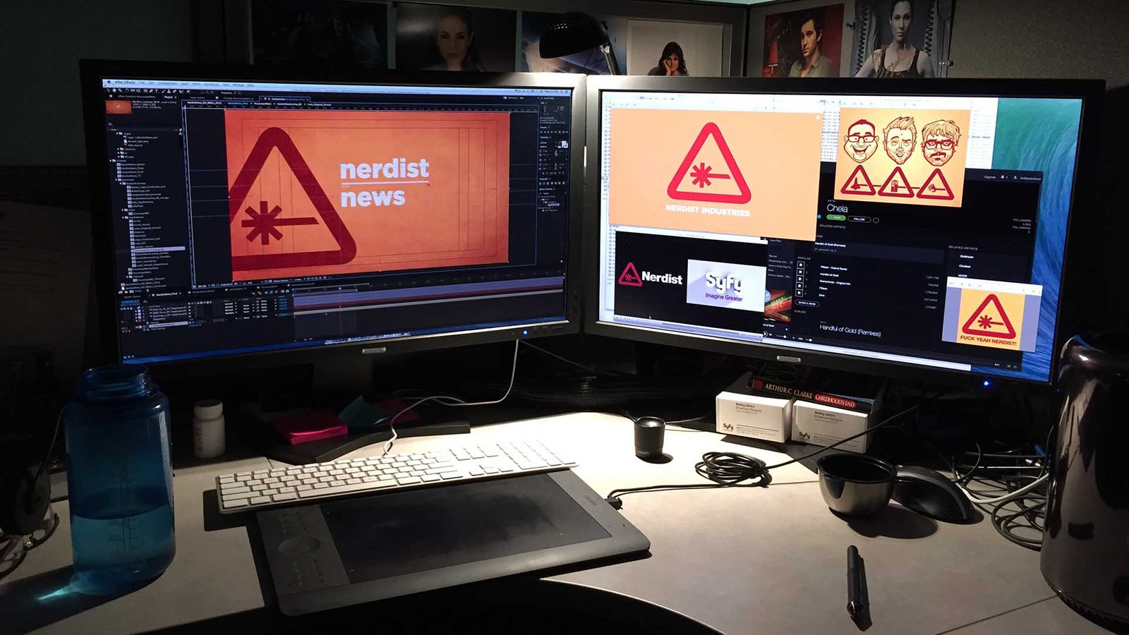 Nerdist News was in development with Syfy to bring Nerdist News in longer-format to Syfy. Chris Hardwick was to host the show covering things like science fiction, fantasy, tech, media, pop culture and all things nerdy. The only thing that could have made Nerdist News on Syfy even better would have been if Jessica Chobot was slated host the show as she’s the face of Nerdist News. We’ve been trying to nurture and grow this format of show, in shows like Reactor and The Wil Wheaton show, and we just couldn’t find out groove. I felt we at Syfy had our answer with Nerdist News. Unfortunately for reasons that aren’t very clear, Nerdist News never made it past pre-production. Well enough background, let’s take a look at the design.