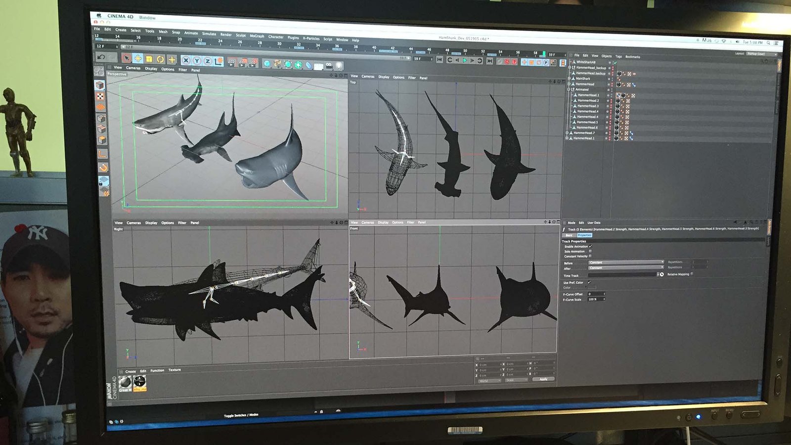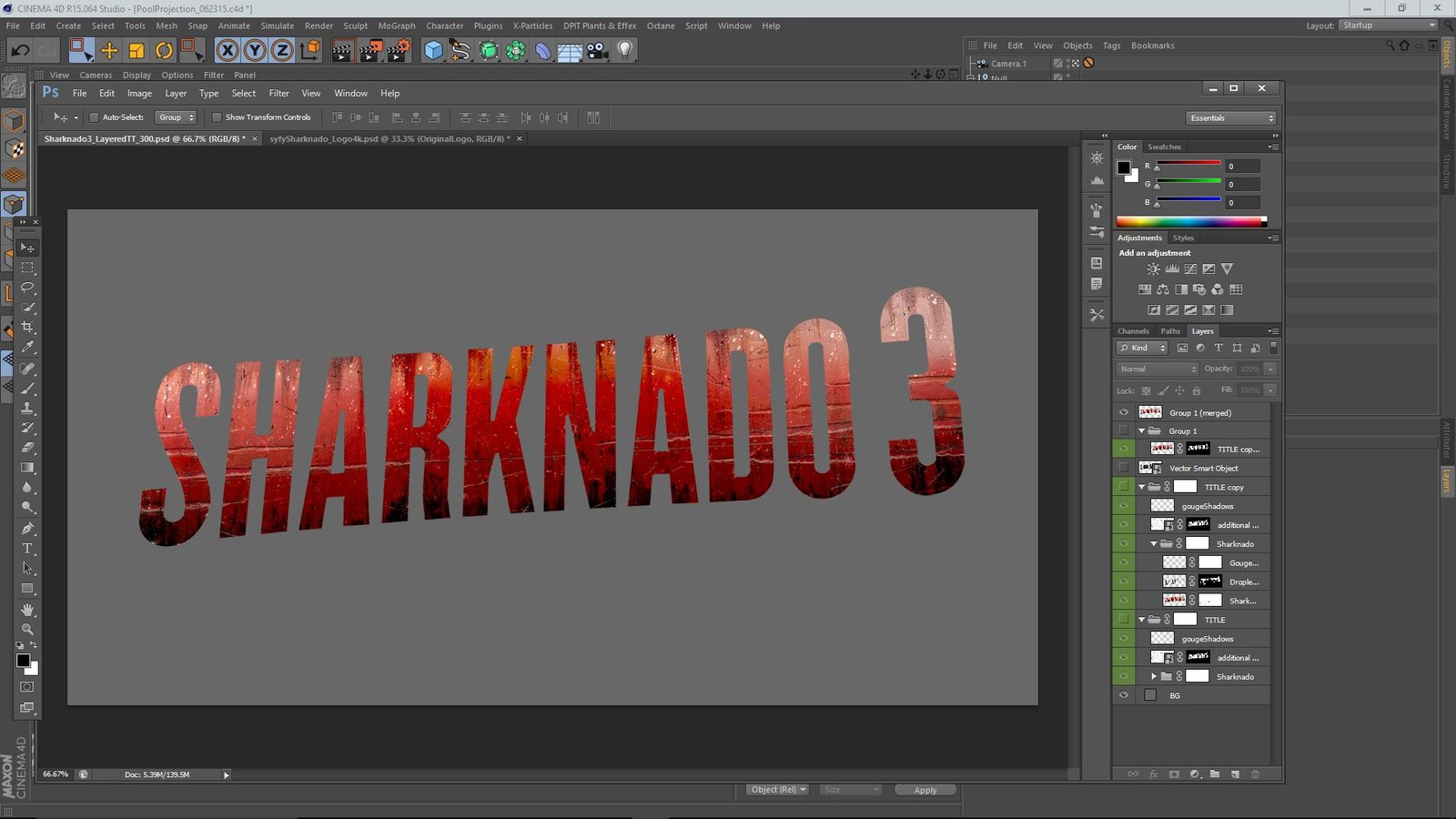 Motion-tests of the sharks swimming in a loop and interacting with the Sharknado 3 logo.