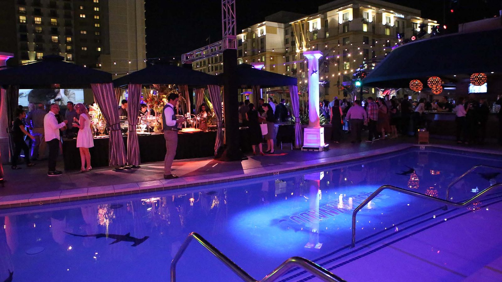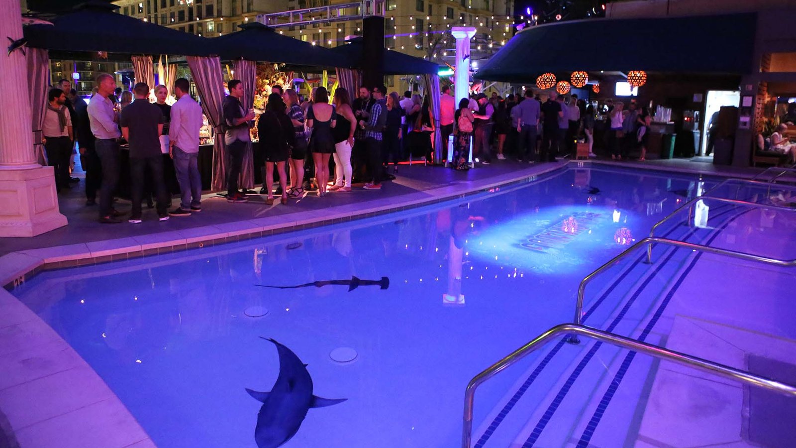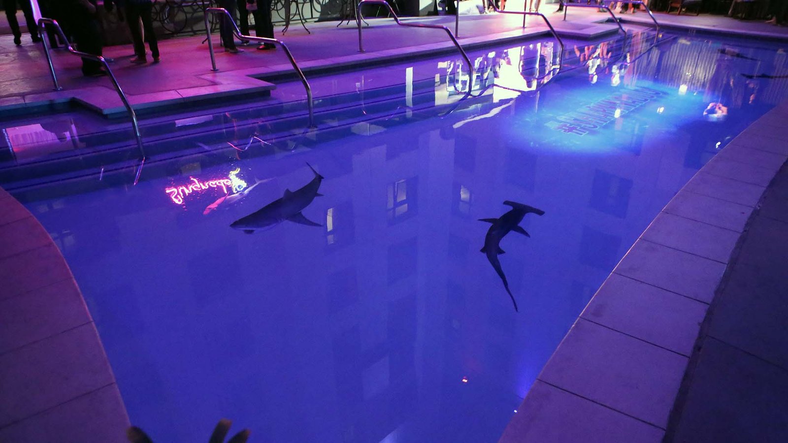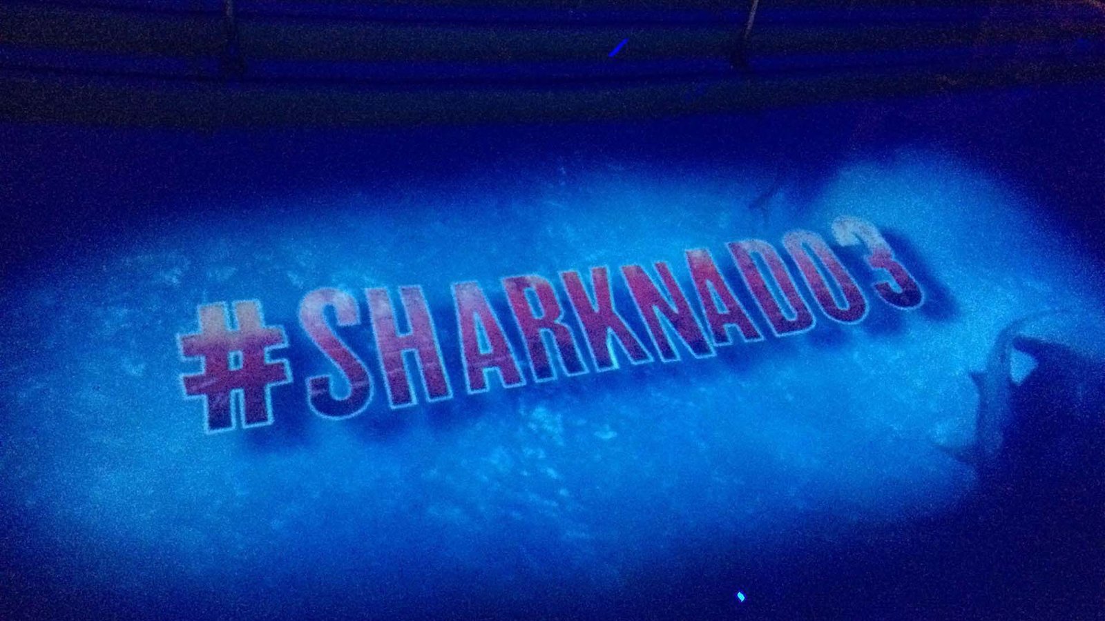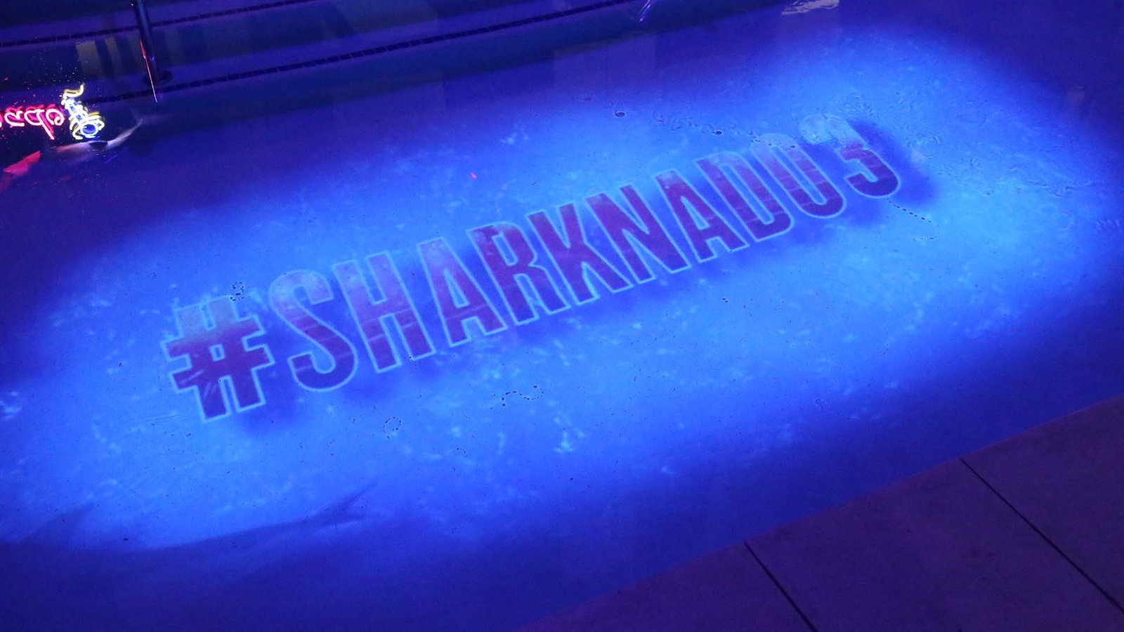 Some shots of the Sharknado projections at ComicCon. The projections made the pool realistically look like there were sharks swimming in it!