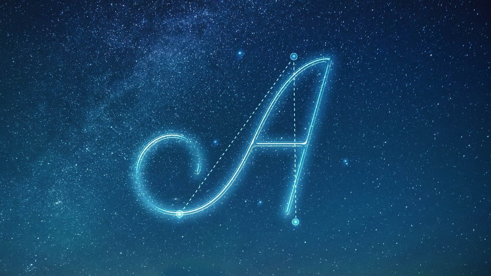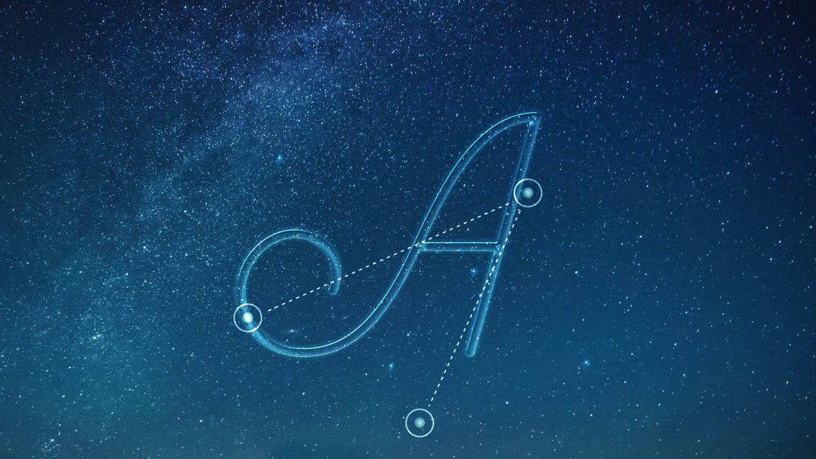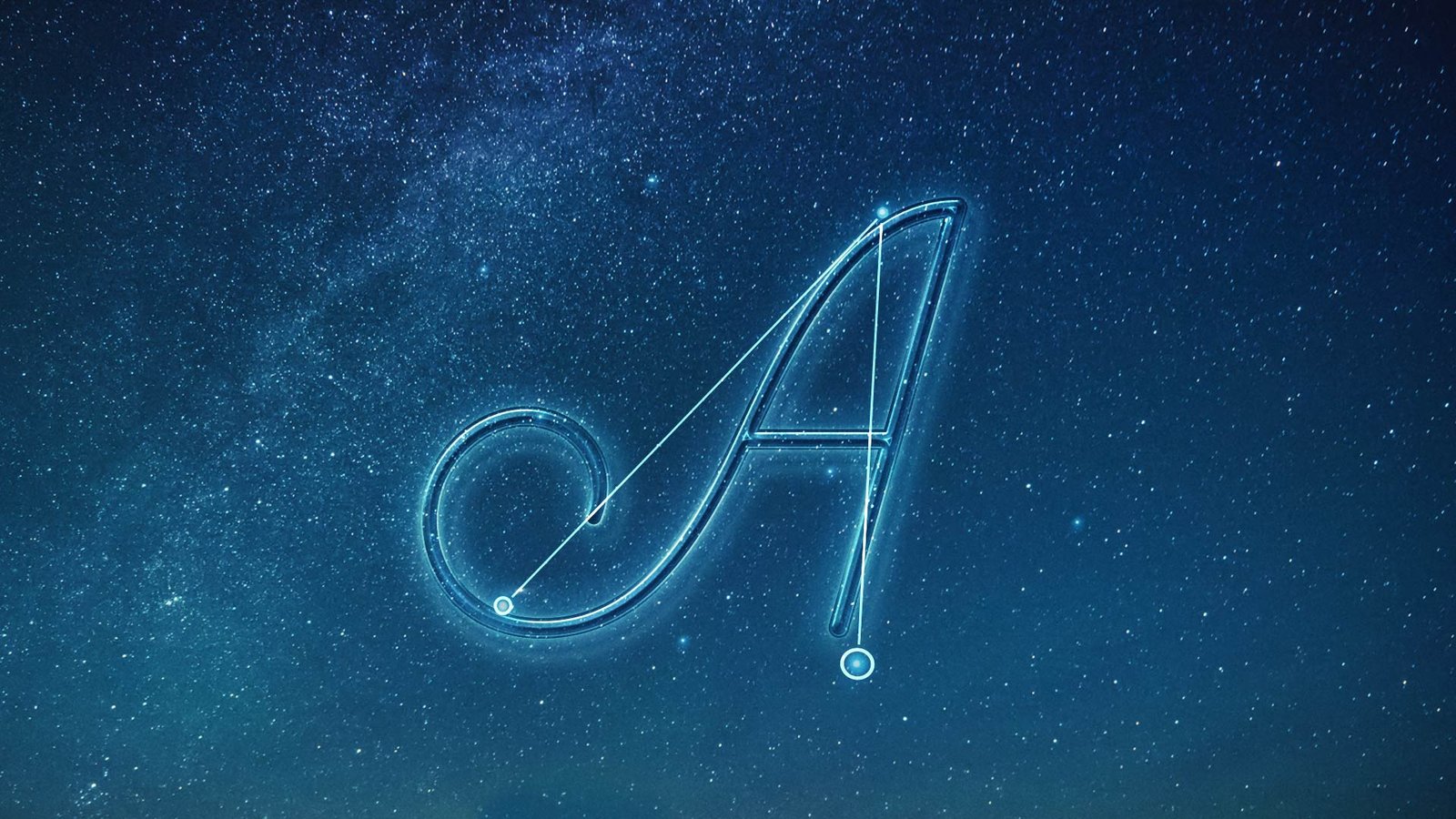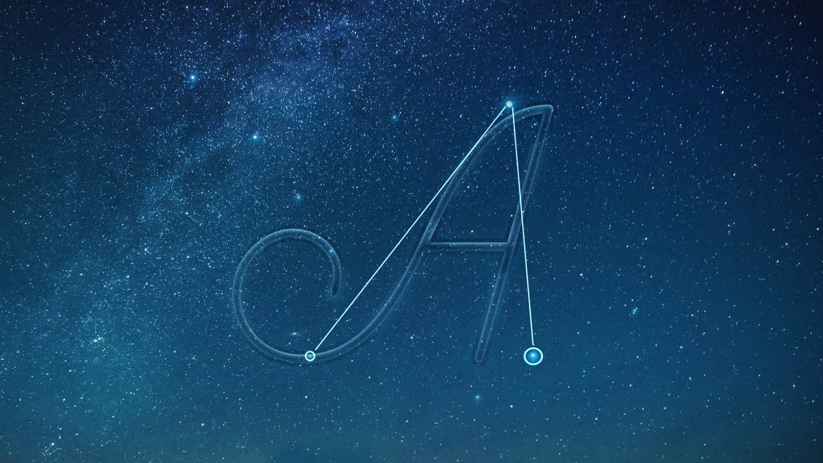 Here’s a screenshot of some iterations for the letterform A, treated with different star constellations and letterforms. We did dozens of these treatments for each letterform used in the spot.