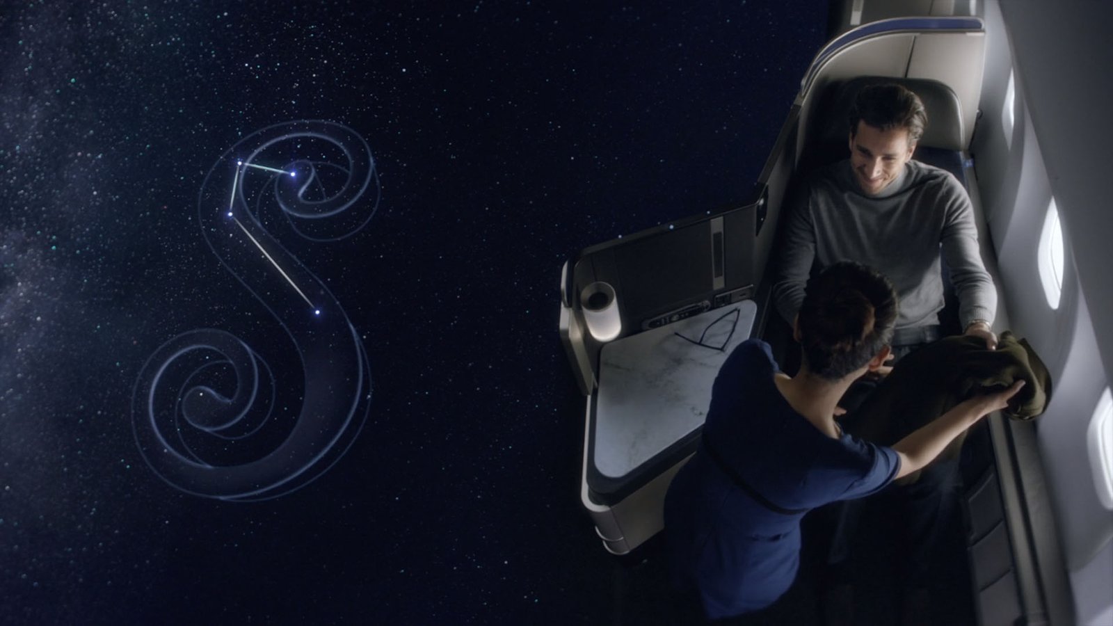 Some frames of the spot, a dipytch between premium constellations and footage tied together with the voice-over to spell out the Premium experience of flying with Polaris.