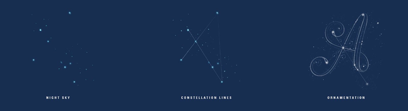 Various constellations, star patterns and type treatments were explored under Ana’s creative purview.