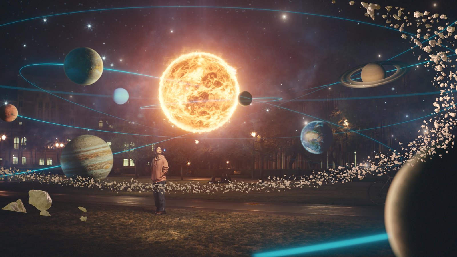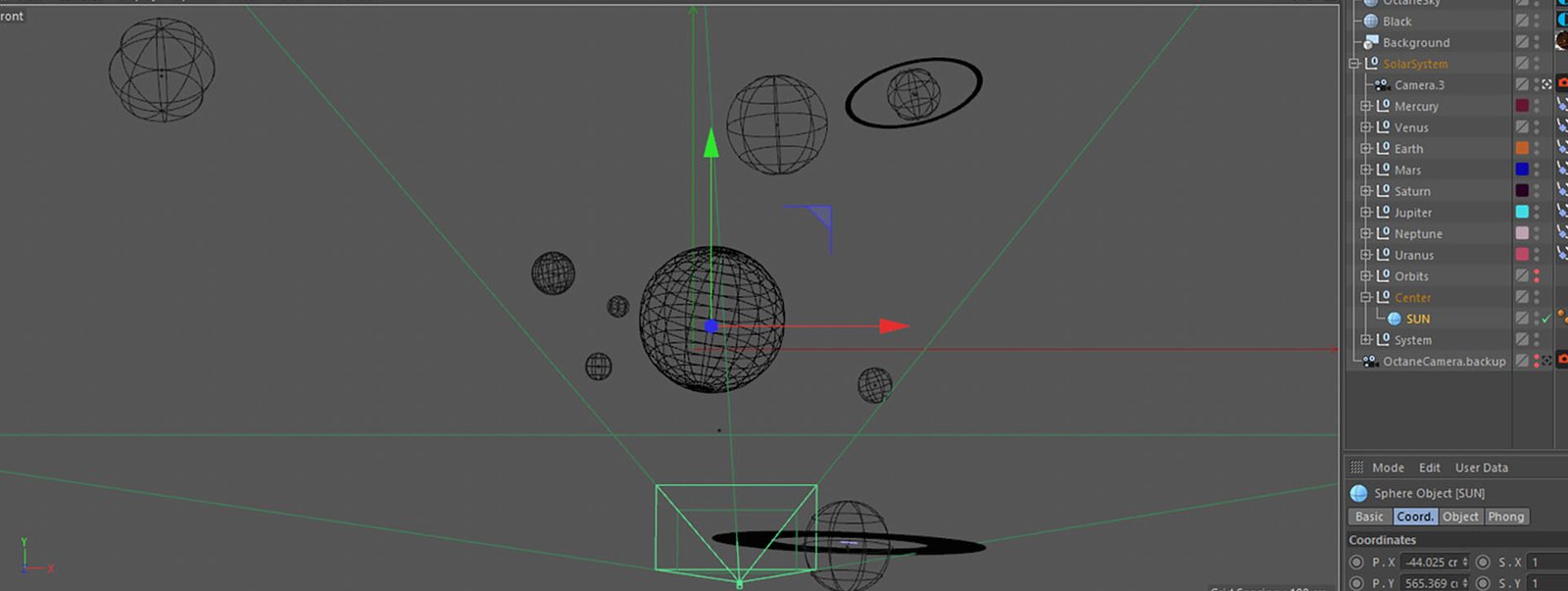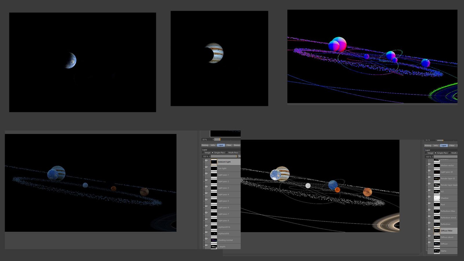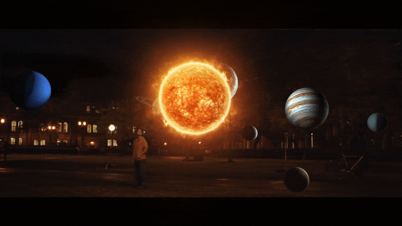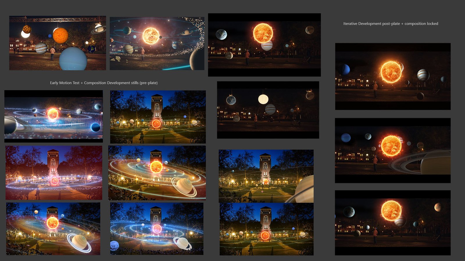 Careful attention was placed on the Planetary orbits and the light from the Sun so that this was realistically lit as if it were the actual solar system. The scale had to be condensed to fit the shot but overall we were able to compositionally make everything flow without feeling too crowded.