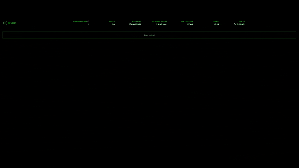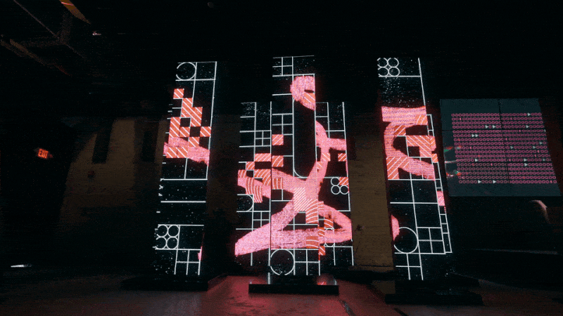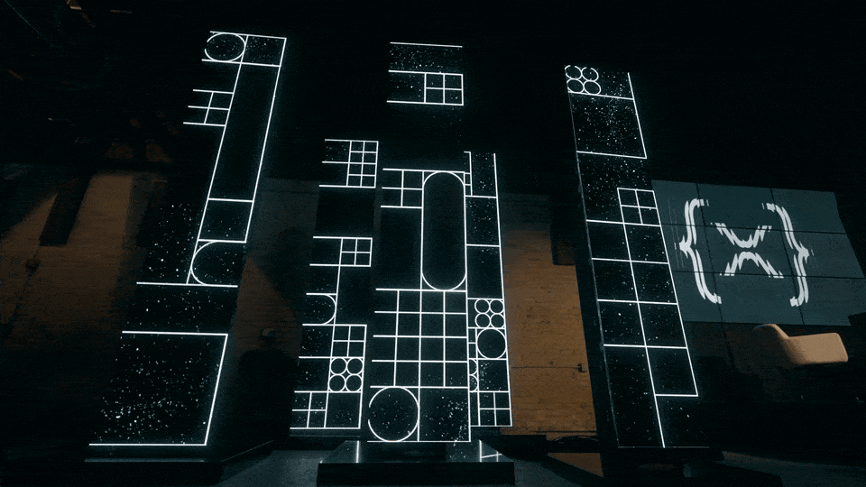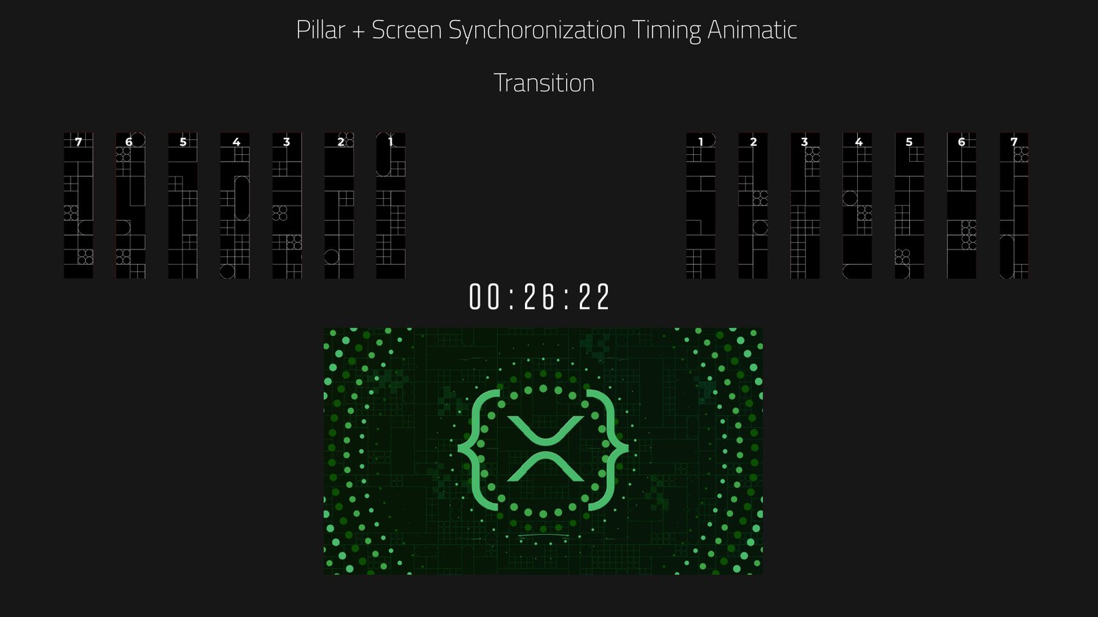 The intention is to create a tangible representation of how the XRP Ledger is manifested through a dynamic light sculpture/display that continually transforms with each new transaction within the ecosystem. This sculptural display had to seamlessly integrate 14x side screens and the main 16:9 keynote screen. The challenge was getting all the elements timed to animate in sync with each other and these elements while retaining the main visual branding of the XRPL’s visual identity. Here are screenshots of the event/sculptural installation screens, as well as a few behind-the-scenes (BTS) screenshots that provide a glimpse into the process of creating these assets.