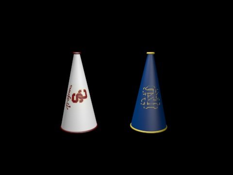 Megaphones will be used as ornaments for the presentation, but I will include an emitter to spew the celebratory ticker-tape.